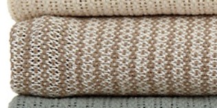 This is a cotton throw in tan and beige.