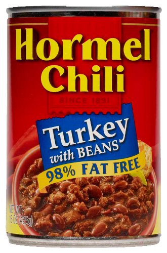 But honestly, when this recipe comes back round in the rotation, I’ll just make Cincinnati chili using Hormel’s 98% Fat Free Turkey Chili, No Beans. It’s not sweet like traditional Cincinnati chili, but tastes great when served ala Hard Times Cafe, with onions, (low fat) sour cream and (low fat) cheese over spaghetti. It’s great winter comfort food. As for a summer substitution, I’ll cross that bridge when I come to it.