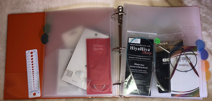 This year, I finally devised a way to organize my circular needles. I bought a large binder and a set of tabs with pockets. Now my needles are organized by size. Interesting, I discovered I had two size 4, 16″ circular needles. Which is weird because I’ve made very few things with size 4 needles. And I just ordered a set of that includes even-number sizes up to size 13 (which takes the place of 12, which doesn’t exist—don’t ask). So now I have three size 4, 16″ needles.