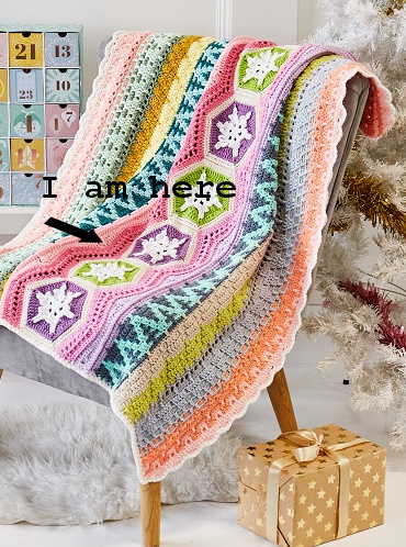 Even though the finished product didn’t thrill me, I was still excited to open drawer #1 on Dec 1st. Instead of crocheting a couple of rows using a particular stitch, as was done last year, this year’s pattern included motifs. I’m not really a fan of motifs.